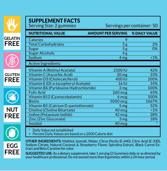 Hair Skin and Nails Gummies with 5,000mcg Biotin - Gummy DHT Blocker for Hair Growth, Loss, and Regrowth - Thinning Hair Pills for Men and Women - 100 Gummies