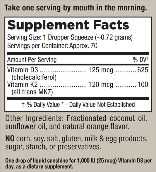 Vegan Liquid Vitamin D3 & K2 Supplement - 5000 IU D3, Trans MK7 K2 - Gluten-Free, Non-GMO - Ideal for Adults & Kids - Daily Sunshine Boost