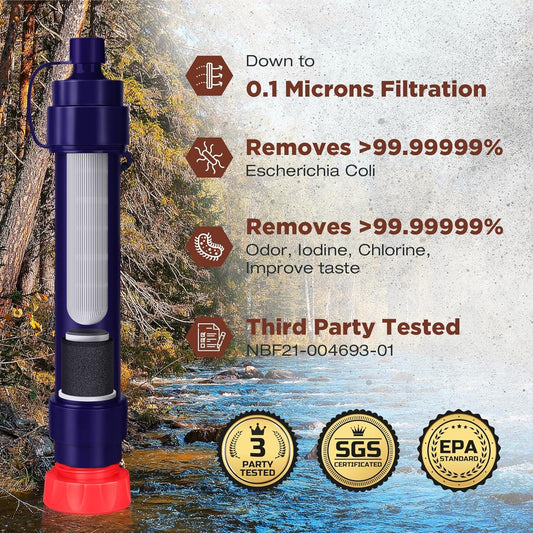 Portable Survival Water Filter Straw for Hiking, Camping, Hunting - Emergency Preparedness Gear for Family Outings & Travel