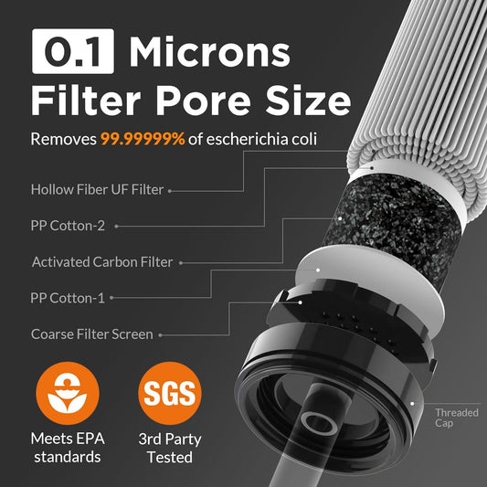 Portable 4-Stage 0.1-Micron Water Filter Straw for Camping and Emergency, 5,000L Purifier by Membrane Solutions