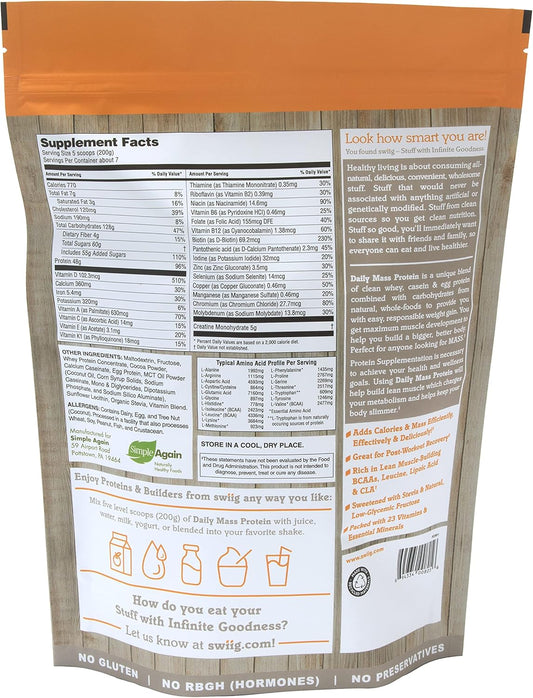 Chocolate Mass Builder Protein Powder - Non-GMO, No Artificial Ingredients, 3.3lb Bag