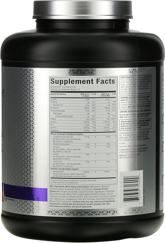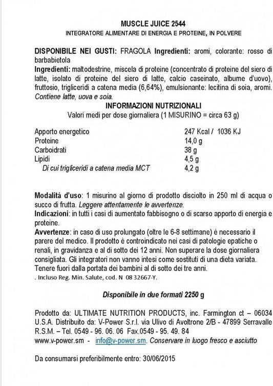 Ultimate Nutrition Muscle Juice 2544 Weight Gainer Drink Mix, Strawberry Flavor, 4.96 lbs, Whey Protein Isolate, Casein, Egg Whites, Lean Muscle Mass Builder