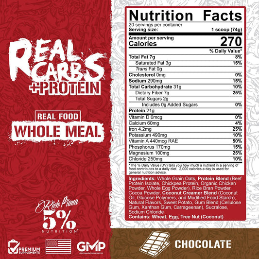 Clean Mass Gainer Protein Powder with Real Carbs and Protein for Workout Recovery Meal - 3.2 lb, 20 Servings (Chocolate)