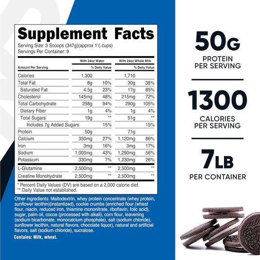High Protein Cookies & Cream Mass Gainer Powder - 70g Protein, 1040 Calories, 175g Carbs - Weight Gain Supplement
