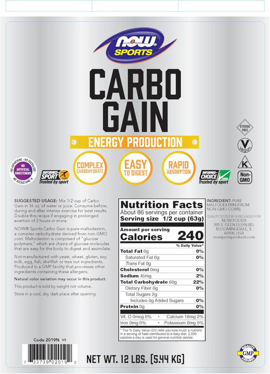 NOW Foods Carbo Gain Powder (Maltodextrin) for Rapid Energy Production - 12-Pound Size
