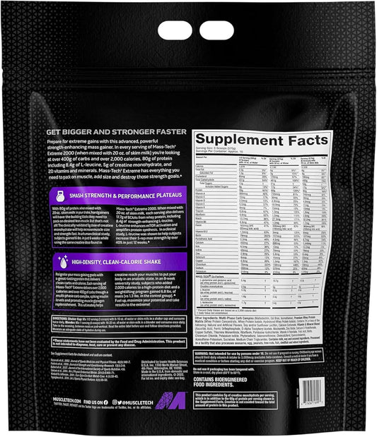 Vanilla Mass-Tech Extreme 2000 Protein Powder for Women & Men, Muscle Builder with Whey Protein, Creatine, and Carbs, 20 lbs