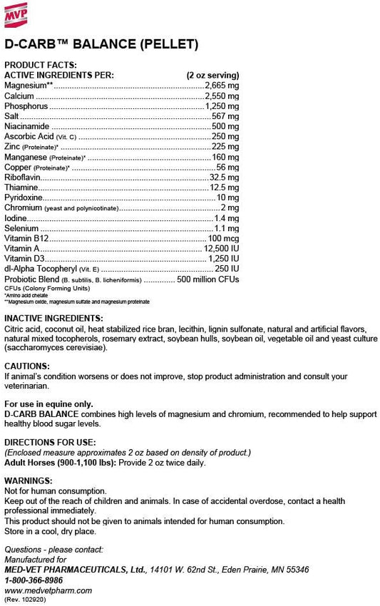 10lb MVP D-Carb Balance Supplement for Glucose Metabolism with Added Vitamins and Probiotics