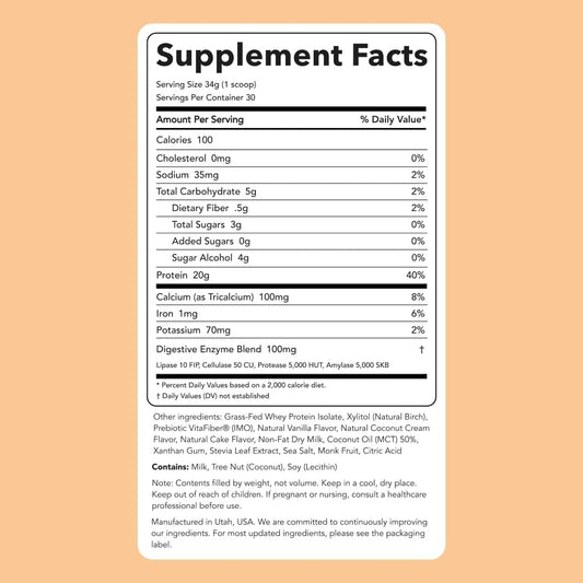 Coconut Cream Whey Protein Powder - Natural Sweetened, Cold-Processed, 20g Protein per Serving (30 Servings)