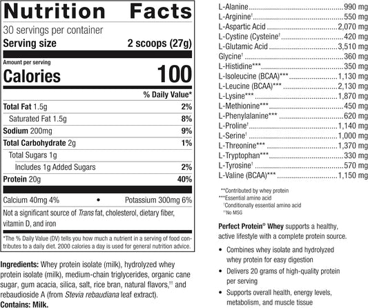 Metagenics Perfect Protein Whey Vanilla - 30 Servings - High-Quality Whey Isolate & Hydrolyzed Protein