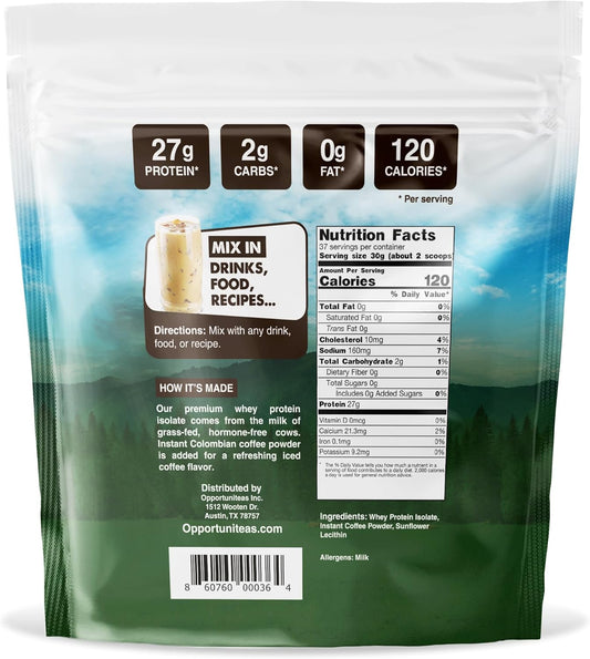 Organic Grass Fed Coffee Whey Protein Isolate Powder - 27g Protein, No Artificial Sweeteners, 60mg Caffeine, Hormone-Free - 5lb