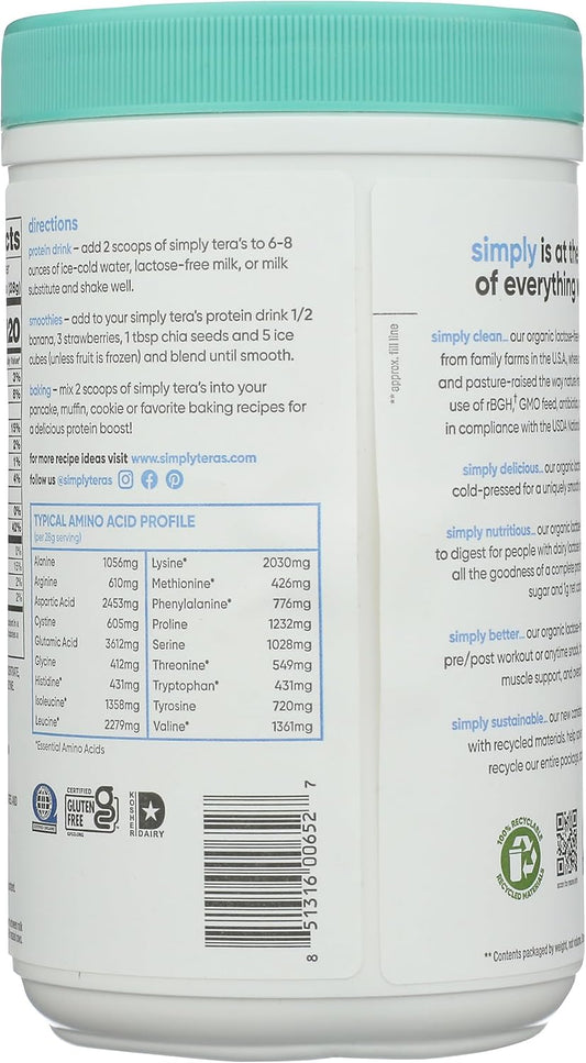 Simply Tera's 12 OZ Organic Lactose-Free Whey Protein Powder