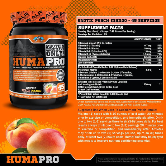 ALR Industries Humapro Amino Acids Protein Matrix | 99% Utilization for Lean Muscle | Vegan, Gluten Free | Exotic Peach Mango Flavor | 334g