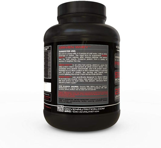 Driven Nutrition Driven WHEY Grass Fed Protein Powder: Vanilla Dream Flavor, 23g Protein with BCAA and Digestive Enzymes for Muscle Recovery (2 lb)