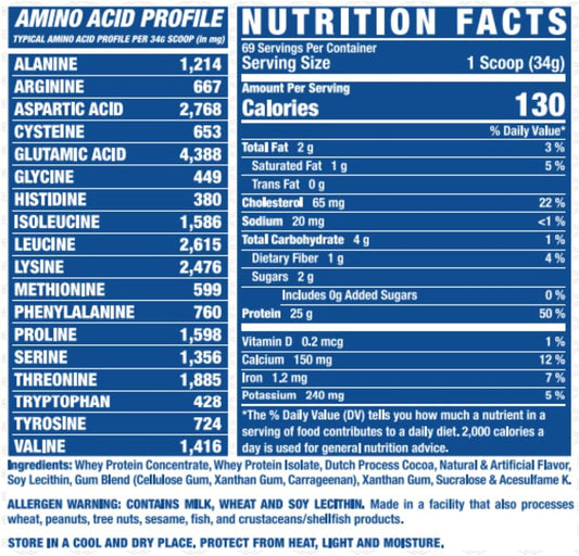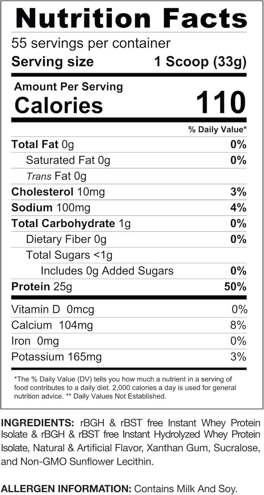 Double Rich Chocolate Whey Protein Isolate Powder - 25g Protein, Zero Sugar, Low-Carb, Gluten-Free - 1 LB
