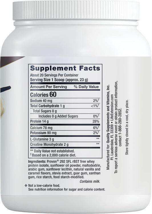 Vanilla Whey Protein Isolate for Muscle Growth & Immune Health - Gluten-Free, Non-GMO, Sugar-Free Shake Mix - 454g