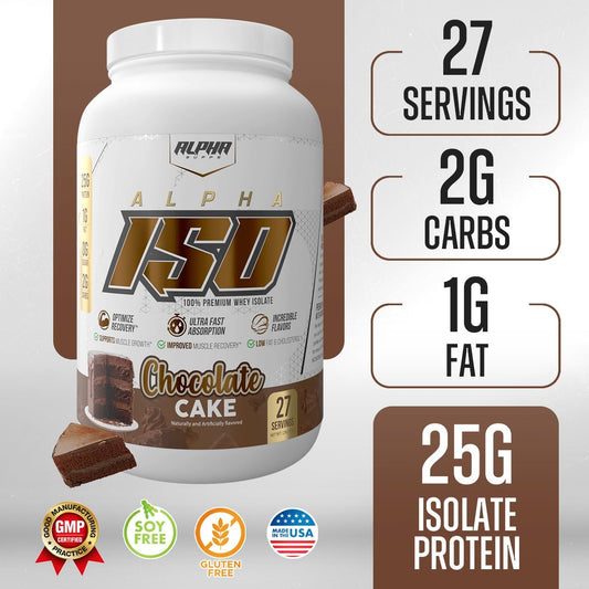 Alpha Supps ISO Chocolate Cake Flavor 100% Whey Protein Isolate Powder - 25g Protein, Muscle Growth Support, Low Carb & Sugar, Gluten Free - 2 lb