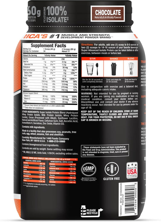 Chocolate Whey Protein Isolate Powder for Meal Replacement Shakes - Body Fortress Super Advanced, 3 lbs, Low Carb, Gluten Free
