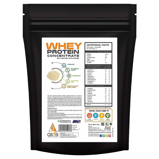 Asitis Nutrition Whey Protein Concentrate 80% Unflavoured, Labdoor Certified, Gluten-Free, Non-GMO - 500g
