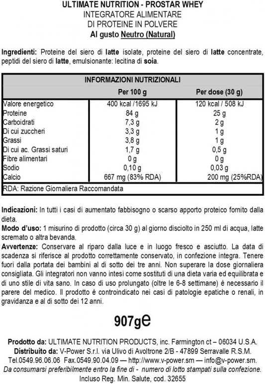 Chocolate Ultimate Nutrition Prostar Whey Isolate Protein Powder - High Protein Shake for Muscle Gain & Recovery - Low Carb, Low-Fat, Keto Friendly - 1lb Tub