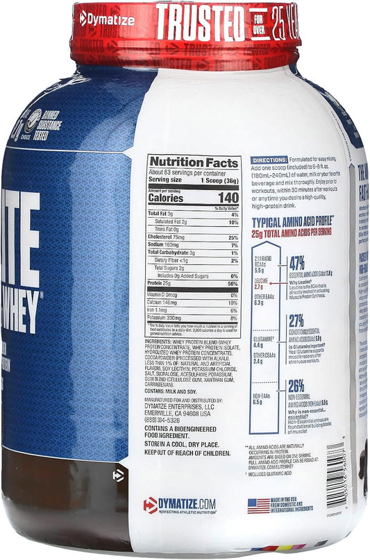 Dymatize Elite 100% Whey Protein Powder, Rich Chocolate Flavor, 5lb - 63 Servings, 25g Protein, 5.5g BCAAs, Fast Absorbing & Digesting for Muscle Recovery