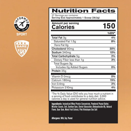 BARE PERFORMANCE NUTRITION Peanut Butter Protein Powder Blend, 25g Protein per Serving, Supports Lean Muscle Recovery, 27 Servings
