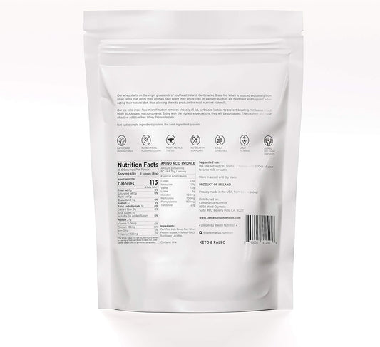Centenarius Nutrition Grass Fed Whey Protein Isolate Powder - Natural Amino Acids for Muscle Growth & Recovery - Cold-Filtered, No Additives - Unflavored