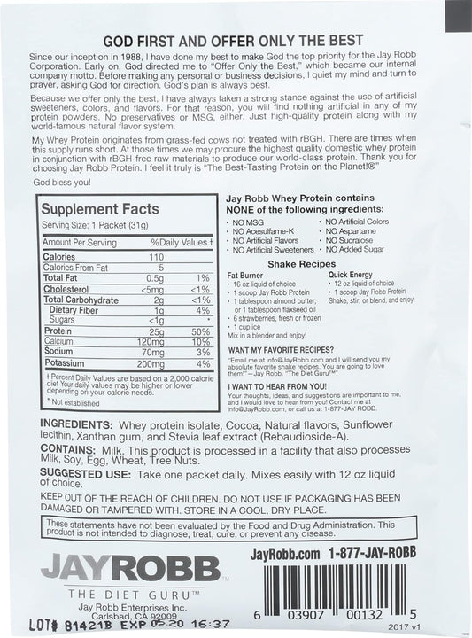 Single Packet of JAYROBB Jay Robb Chocolate Whey Protein Powder - 1.06 OZ