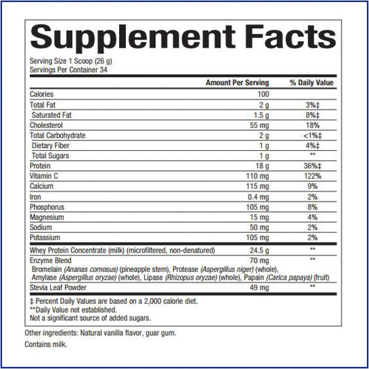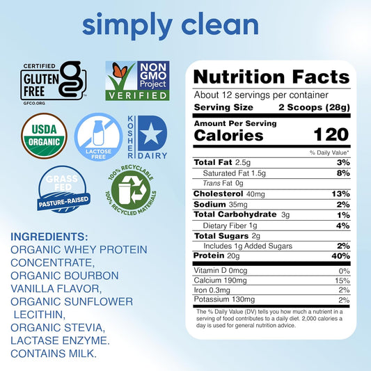 Organic Vanilla Whey Protein Powder - Lactose-Free, Non-GMO, Gluten-Free, Kosher - 20g Protein Per Serving - 12 Oz Jar