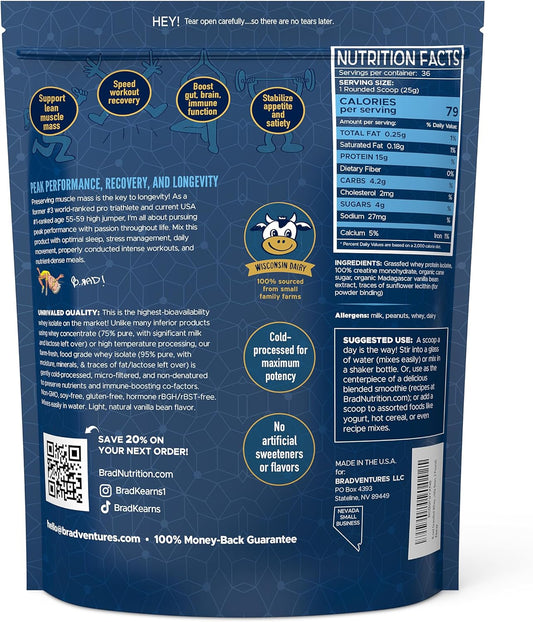 Vanilla Bean Grass-Fed Whey Protein Isolate Powder with Creatine | All-Natural Superfuel | 100% USA-Sourced | 2 Pounds