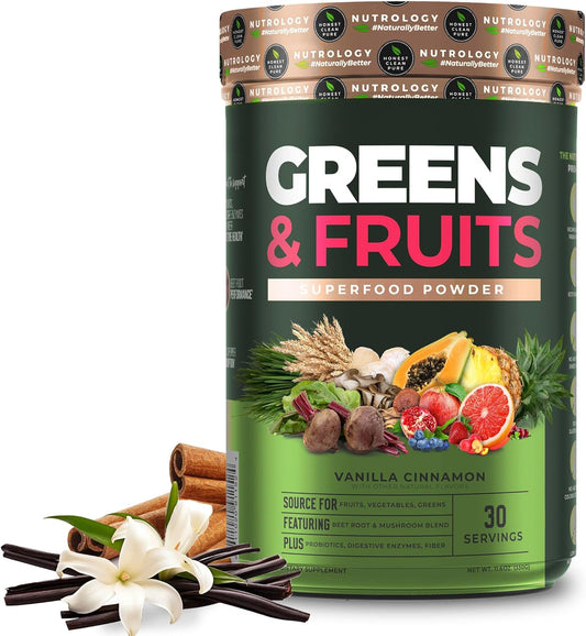 Nutrology TRIPACT Protein Powder & Greens Superfood Bundle - Superberry & Vanilla Cinnamon Flavors - 40 Servings Protein, 30 Servings Greens & Fruits Powder