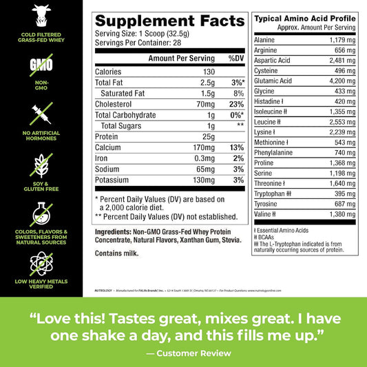 Nutrology Grass Fed Whey Protein Powder: Lean Muscle Recovery & Performance Support, Vanilla Ice Cream & Orange Coconut (58 Servings)