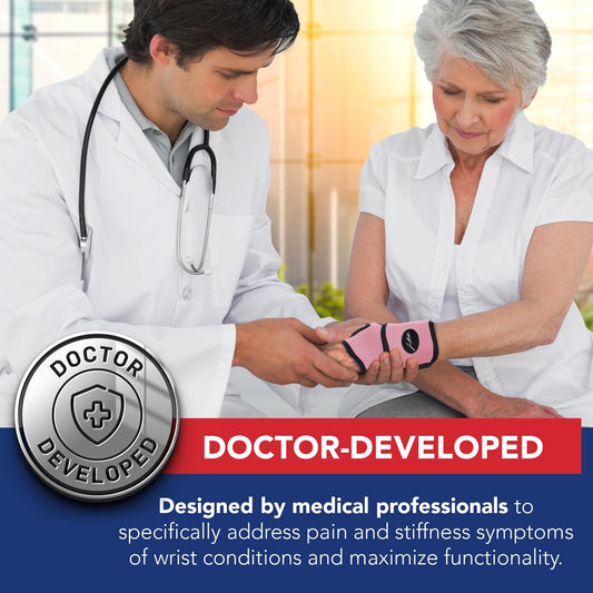 Dr. Arthritis Wrist Brace for Carpal Tunnel & Arthritis - Doctor Developed Hand Support for Fitness & Weightlifting - Pink, 1 Pack with Handbook