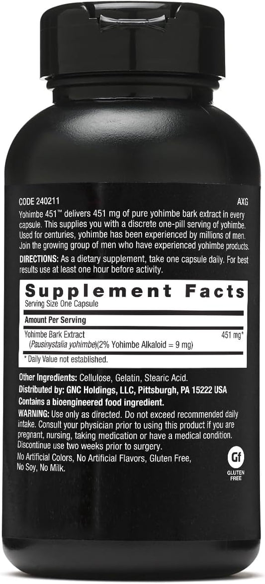 GNC Men's Yohimbe 451 Supplement - 60 Capsules for Male Health and Performance