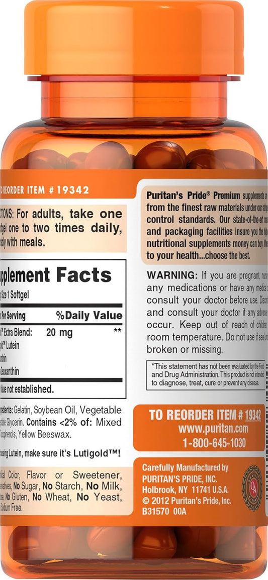 60 Soft Gels Puritan's Pride Lutigold Extra for Healthy Eyes - Lutein, Meso-zeaxanthin, and Zeaxanthin Blend