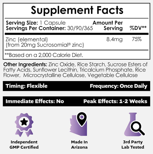MicroZinc Capsules | 20mg Zinc Supplement | Enhanced Formula | 30 Count Bottle