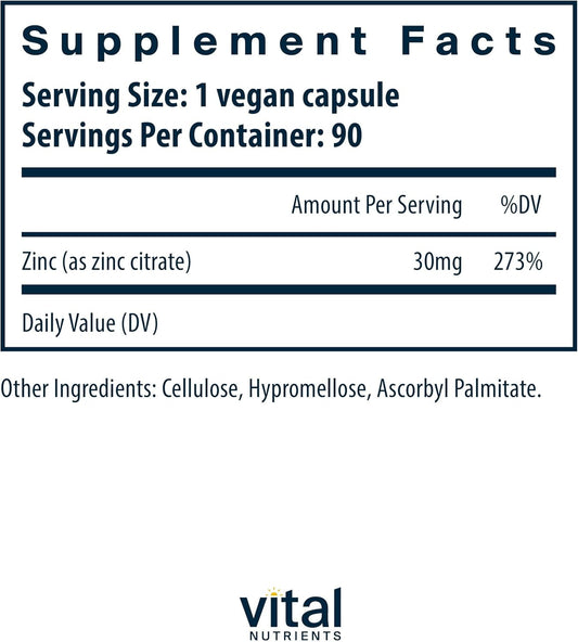 Zinc Citrate 30mg Immune Support Supplement | Vegan & Non-GMO | Easily Absorbed | 90 Capsules