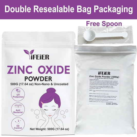 500g iFEiER Zinc Oxide Powder for Skin Protection | Non Nano Coated Cosmetics Grade | DIY Sunscreen Formula