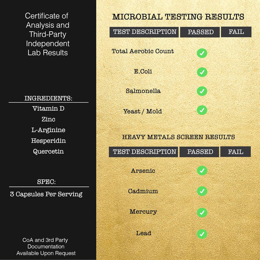 Vitamin D Zinc Immune Support Supplement with L-Arginine Quercetin Hesperidin - Non-GMO Gluten-Free Veggie Capsules - 90 Count