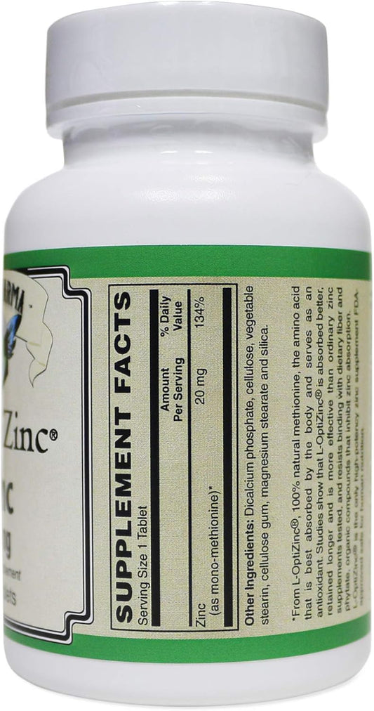 AlchePharma AP L-OptiZinc® 20mg Complex - Natural Methionine Bound Zinc (250 Capsules)