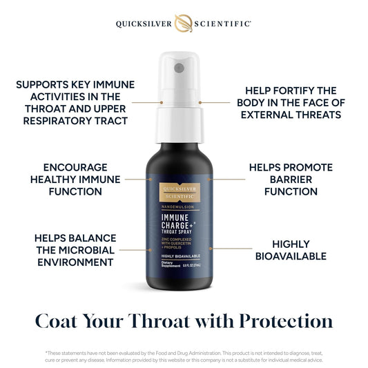 Immune Charge+ Zinc Throat Spray with Quercetin for Immune Support - Liposomal Absorption Technology - 0.9 fl oz