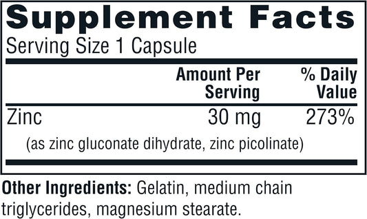 Twinlab Zinc Capsules - Immune System Support, Metabolism Booster, Skin Health - 100 Count